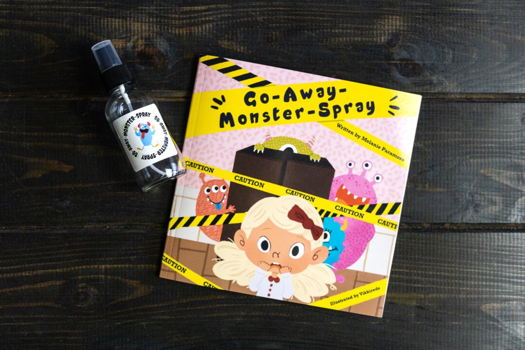 This is a product bundle of the book “Go-Away-Monster-Spray” by Melanie Paramore AND one empty 4oz glass spray bottle with a matching label to DIY your own monster spray. The book includes a recipe to follow along with the characters.